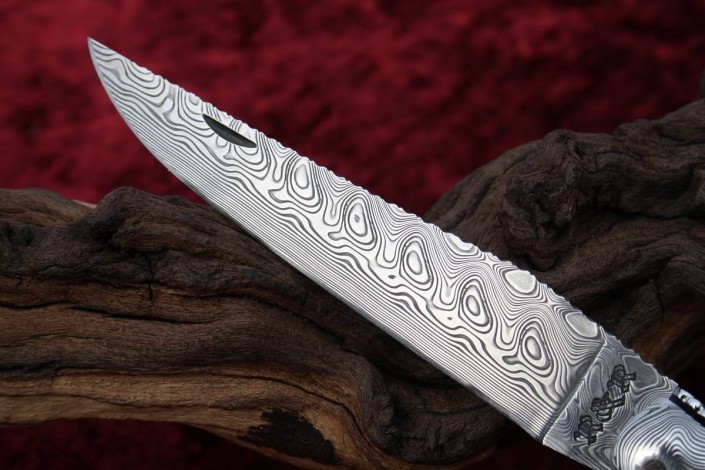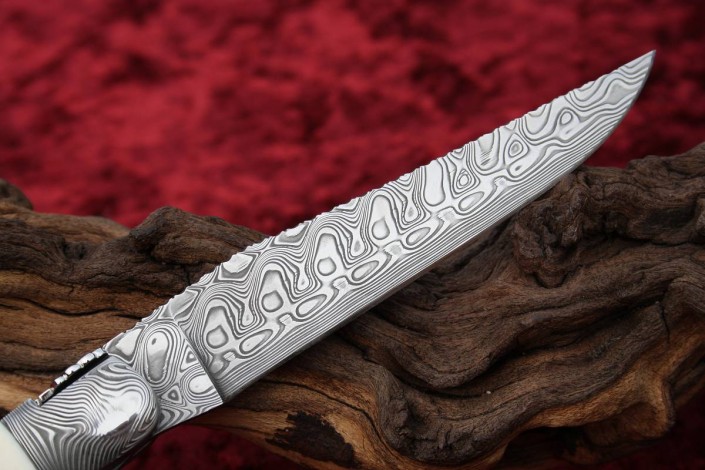 • Klinge: Edelstahldamast (Fishbone) Fa. Damasteel oberhalb verziert