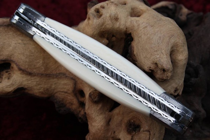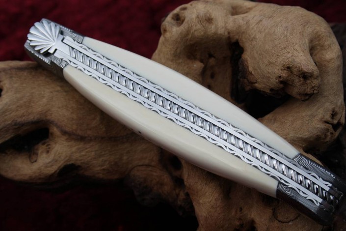 • Griffmaterial: Elfenbein mit Cites, 2 Edelstahlplatinen umlaufend verziert