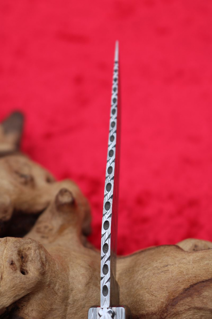 • Klinge: Edelstahldamast (Fish) Fa. Damasteel oberhalb verziert