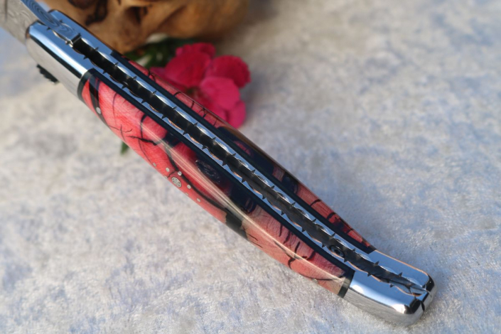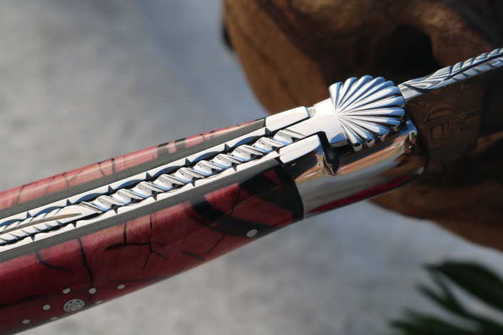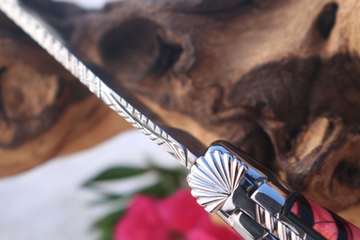 • Klinge: Edelstahldamast (Rose) Fa. Damasteel oberhalb verziert